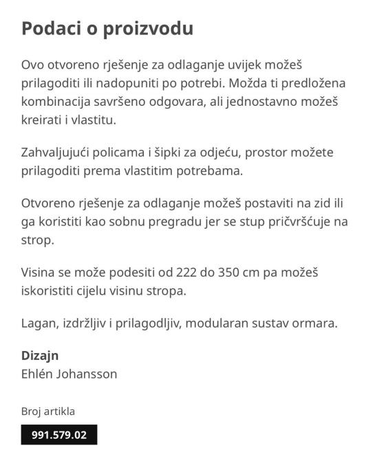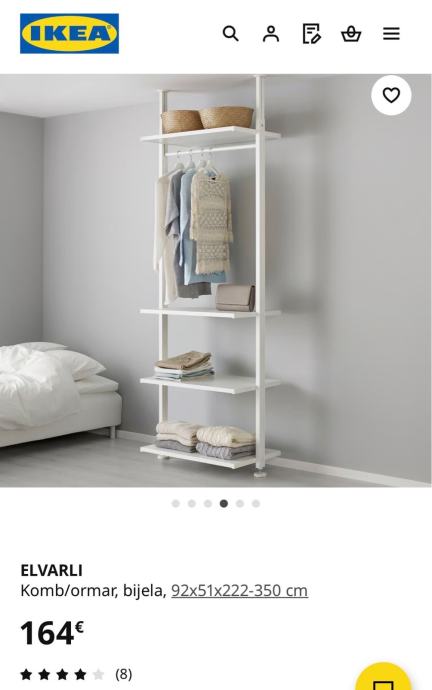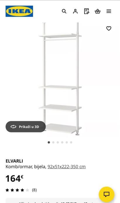 Prodajem ELVARLI otvoreni ormar korišten cca godinu dana. Ormar ima zaljepljeno ROLFSTORP led prigušivo svjetlo/ rasvjetu (na kabel/ baterije) koja dolazi uz njega.