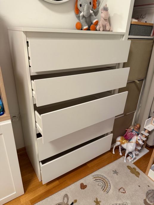 Prodajem IKEA KULLEN komodu s 5 ladica u bijeloj boji. Komoda je funkcionalna, stabilna i korištena u dječjoj sobi.