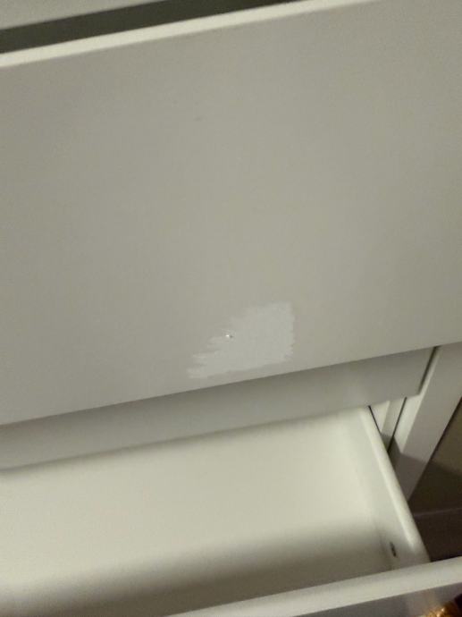 Komoda je u dobrom općem stanju. Na prvoj ladici postoji manja ogrebotina/trag od naljepnice, vidljivo na fotografijama. Ostalo uredno, ladice se normalno izvlače i zatvaraju.