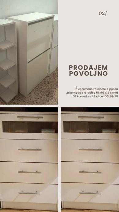 Povoljno prodajem 2 komode, 1 policu I 2 otmarića za cipele u odličnom stanju