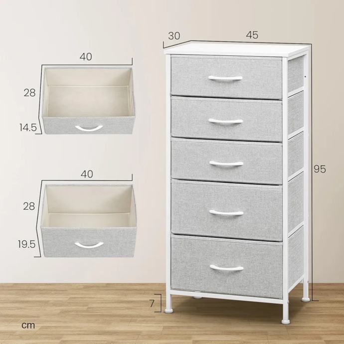 JEDNOSTAVNO SASTAVLJANJE: Ormarić s 5 ladica jednostavan je za sastavljanje uz ilustrirane upute i pribor. Ladice se mogu vaditi za fleksibilnu upotrebu. Ukupne dimenzije: 45,5 x 30 x 95 cm, ladice: 40 x 29 x 14,5 cm i 40 x 29 x 19,5 cm