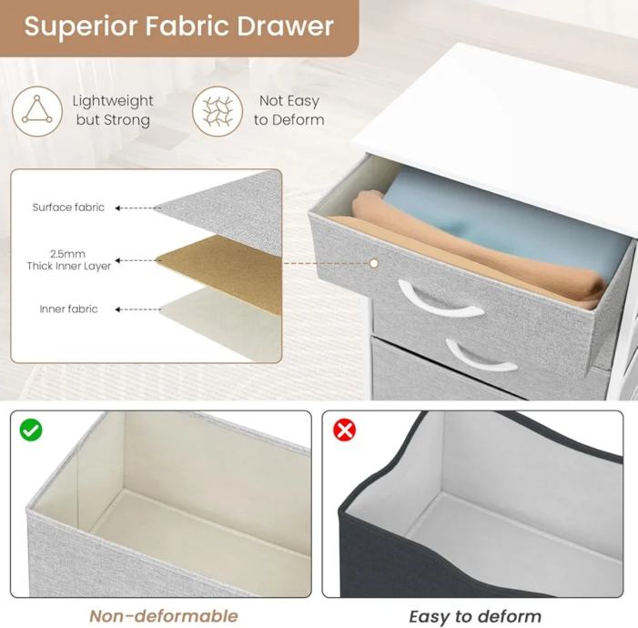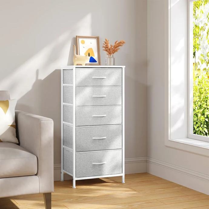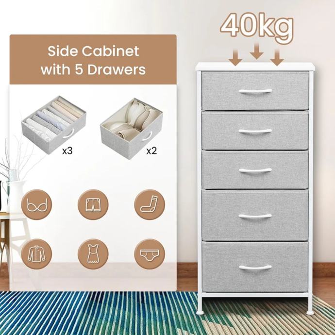 NIKAD VIŠE NEREDA - 5 ladica za tkanine s 2 veličine omogućuje vam organiziranje i razvrstavanje odjeće, čarapa; gornja razina služi za izlaganje ili pohranu predmeta. Vaša će soba postati čista i uredna