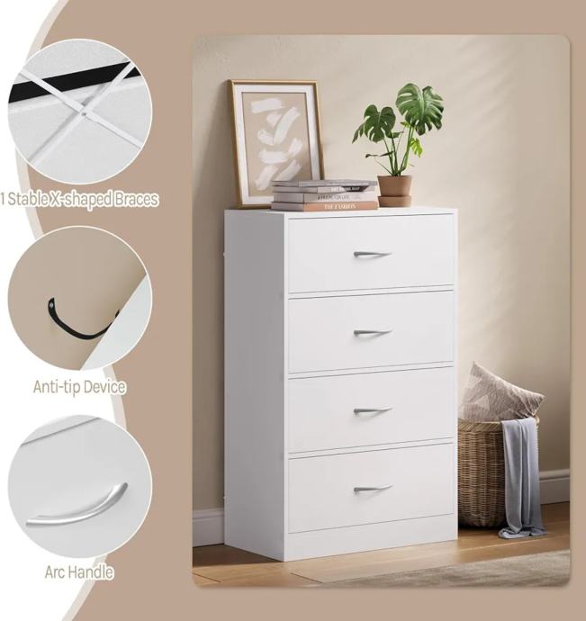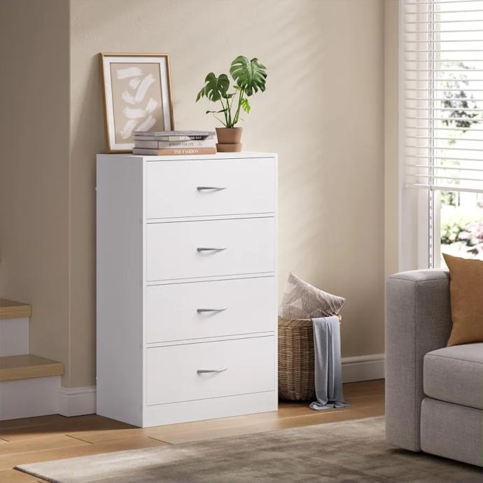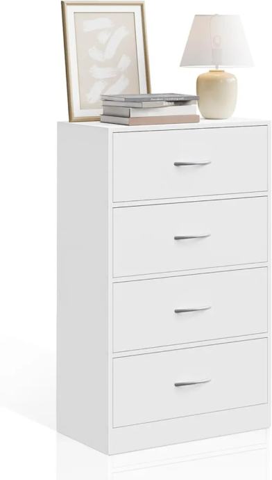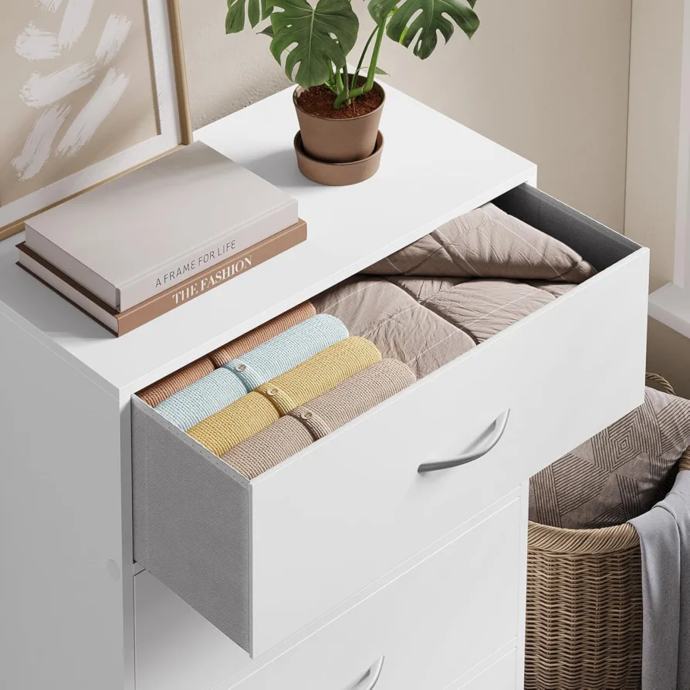 Komoda od tkanine s 4 ladice, uska jedinica za pohranu s čvrstim metalnim okvirom, ormarić za spavaću sobu, dnevni boravak, hodnik, bijela, 55x30x89cm, SSK014wes-UK