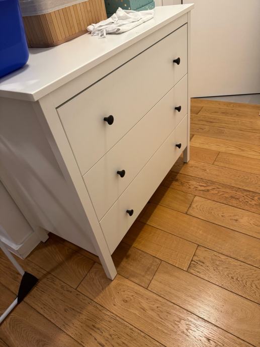 Bijela Ikea komoda za previjanje i/ili odlaganje s ladicama.