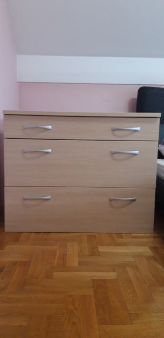 Prodajem komodu/ladičar sa tri ladice. Pogodno za skladištenje i preskačenje beba. Vrlo očuvano, ručna izrada. Dimenzije: 100x80x60.