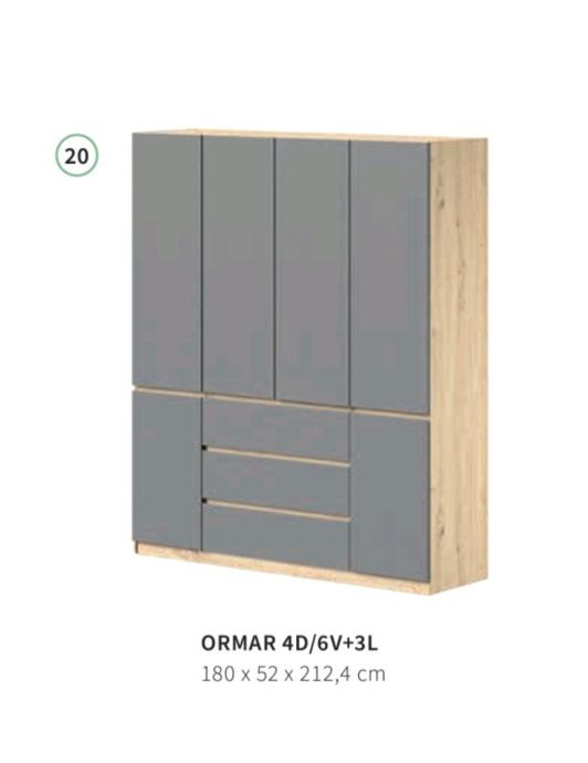 Ormari za spavaću sobu, Oscar lux linija prime. Boja hrast i sivo.