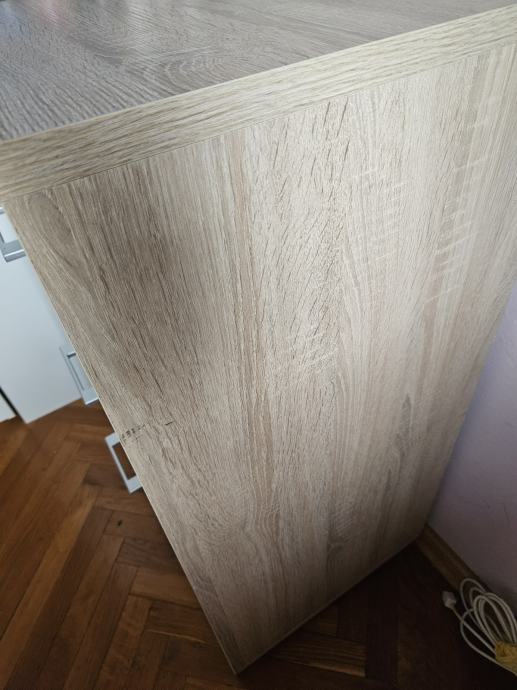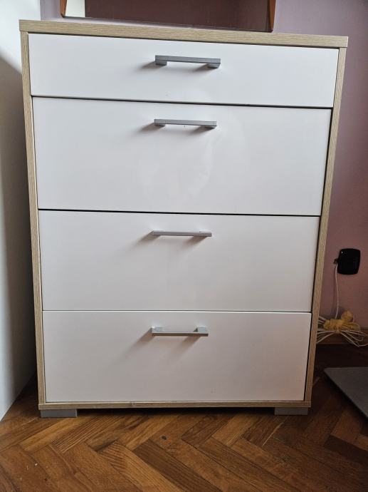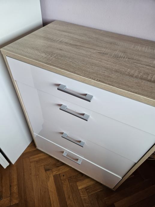 Prodajem komodu bijela visoki sjaj sa dizajnom uzorka drveta.4 ladice.Očuvana.Dimenzije: Š=42,5, D=70cm, V= 91,5cm.