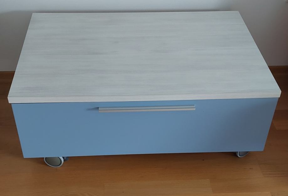 PRAKTIČNI KOTAČIĆI SA STOPERIMA, DUBOKA I FUNKCIONALNA LADICA SA VODILICAMA I PROSTRAN GORNJI DIO, A JEDNOSTAVAN TRANSPORT BEZ RASTAVLJANJA (širina 90 × visina 39 × dubina 70).