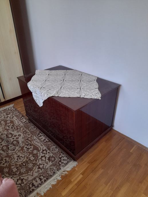 Komoda za posteljinu, uščuvana, nigdje oštečena, boja trule višnje, visoki sjaj.