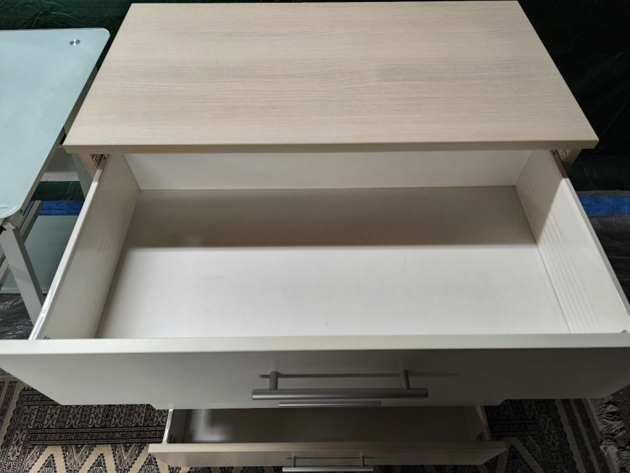Vrlo kvalitetna, cvrsta komoda s čvrstim policama i visoki uski ormar s ladicom. Odlicno stanje, uredno i cisto, moguca dostava, moguce pojedinačno, pogledaj i druge oglase.