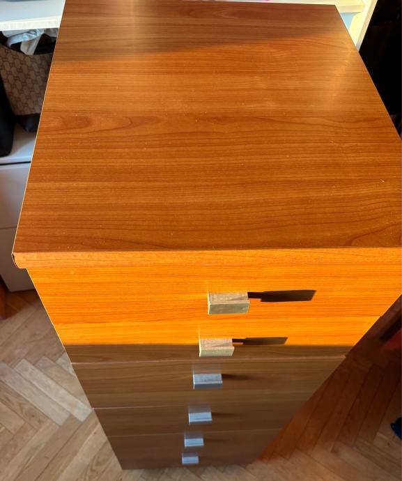 Poklanjam ladičar s 6 ladica. Dimenzija: šxdxv 43x50x124 cm. Visina dvije ladice je 13cm, visina četiri ladice 22cm.