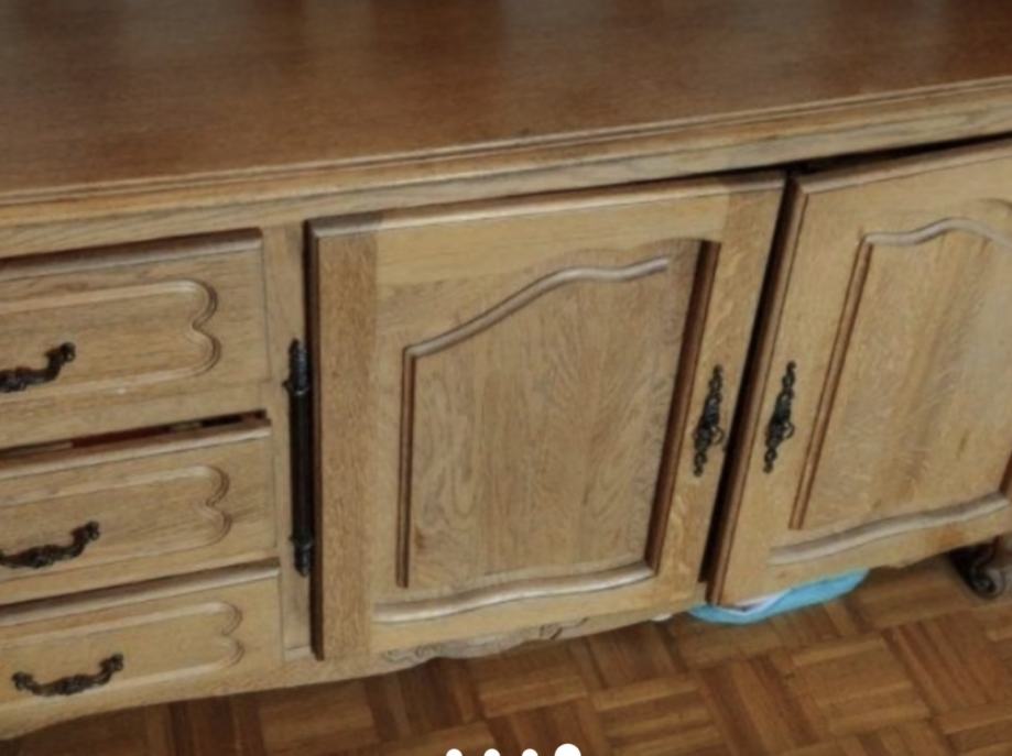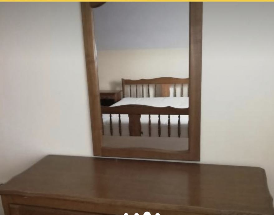 Prodajem komod s ogledalom, klasičnog dizajna u prirodnoj boji drva. Komod ima tri veće ladice s lijeve strane te dva ormarića s vratima i praktične police za odlaganje. Metalne ručke u vintage stilu doprinose tradicionalnom izgledu. Ogledalo ima ukrasni drveni okvir s elegantno oblikovanim gornjim rubom. Set je funkcionalan i pruža dosta prostora za odlaganje u spavaćoj sobi. Prodaje se zajedno kao komplet.