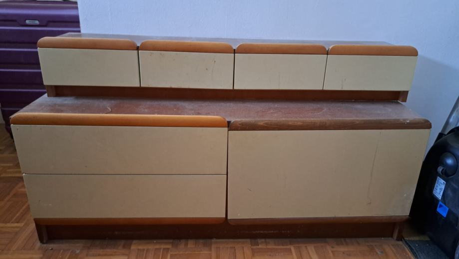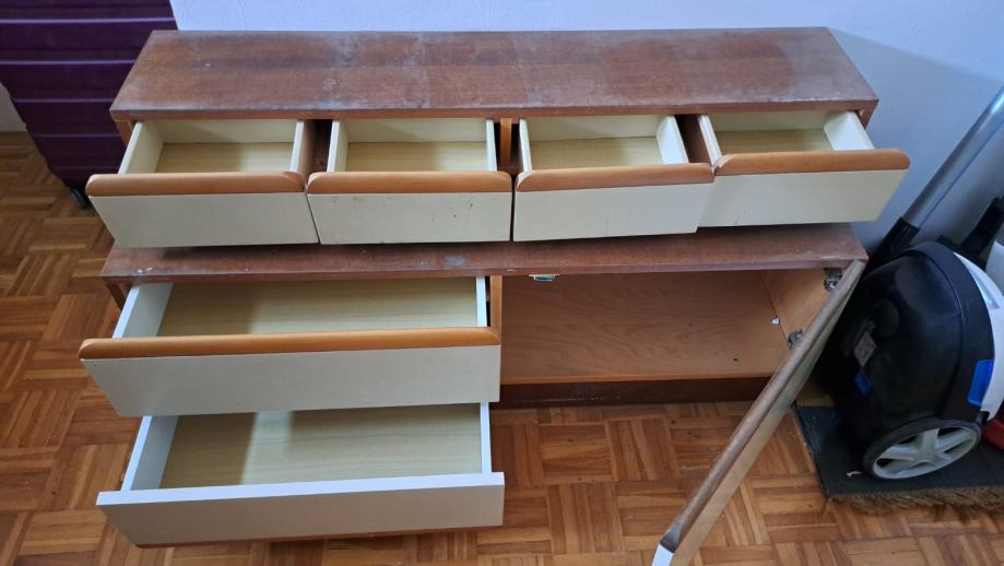 Poklanjam nisku komodu s ladicama i zatvorenim policama za spavacu sobu.