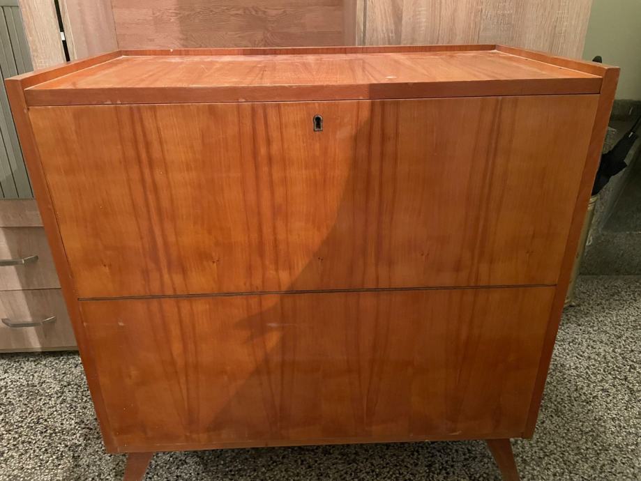 Prodaje se očuvana retro komoda prepoznatljivog dizajna iz 60-ih godina s karakterističnim kosim nogicama. Idealna za ljubitelje vintage stila i "mid-century modern" estetike.
