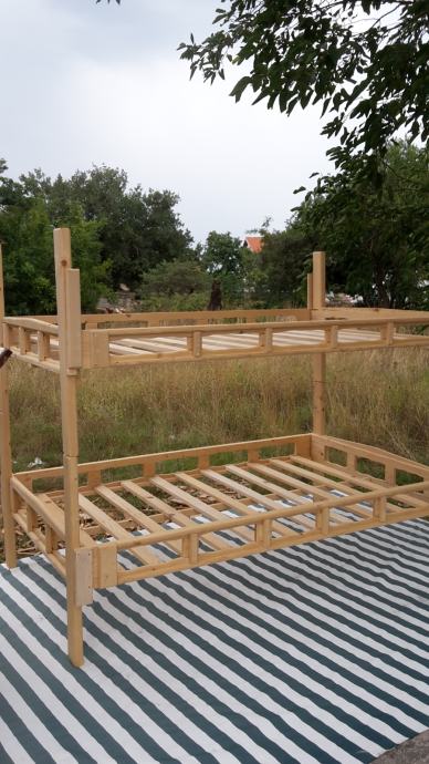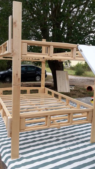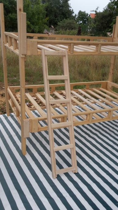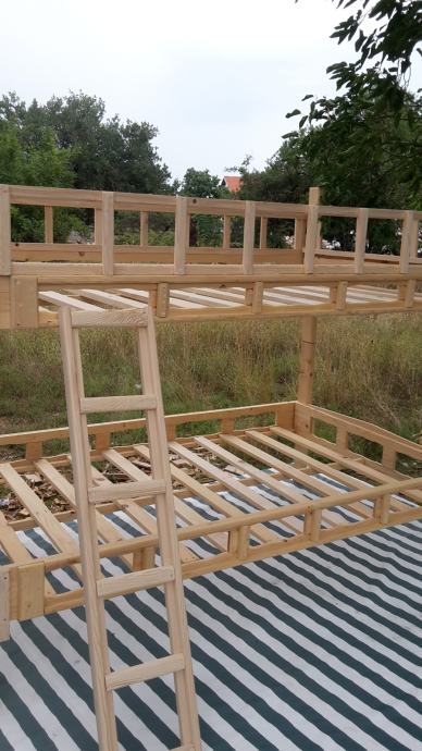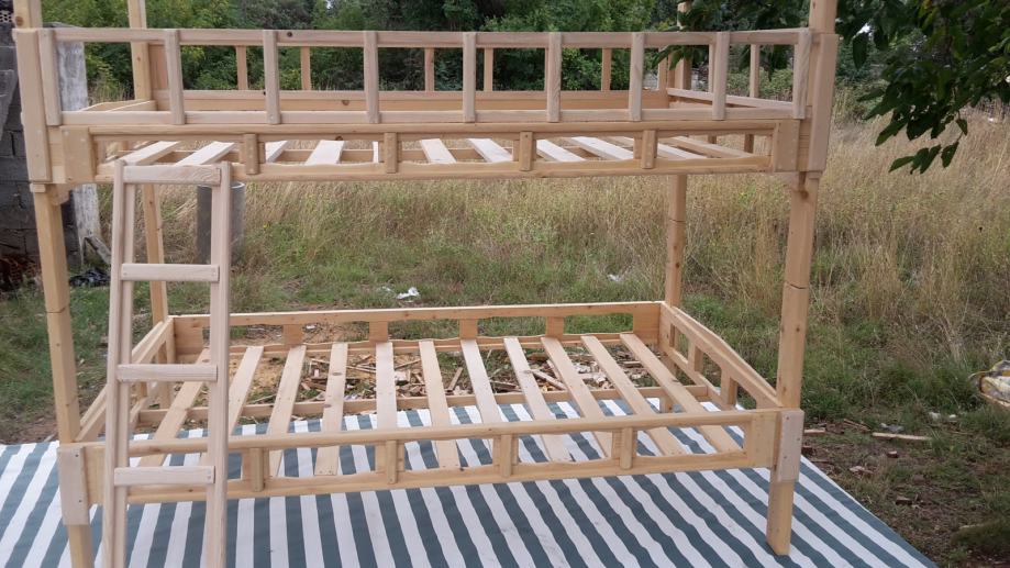 Prodaje se krevet na kat od punog drveta uz garanciju,krevet je vrhunske izrade,gornji krevet ima okolo ogradu radi sigurnosti spavaca,kreveti nisu fixni kao u vecine kreveta na kat,gormj krevet se moze skimuti i djeluje kao zaseban tj.kreveti nis vezani jedan za drugi i to je velika prednost,tj. Jedan krevet moze bit u jednoj prostoriji a drugi u drugoj il oba zajedno,mmoguce i razne zamjene,radi dogovora iskljucivo nazvati