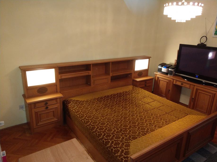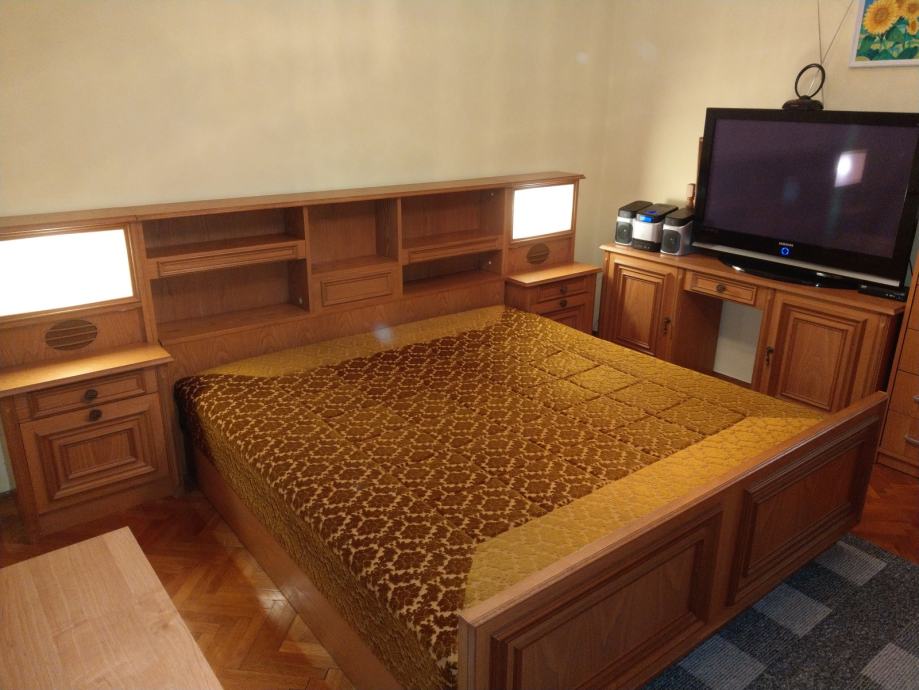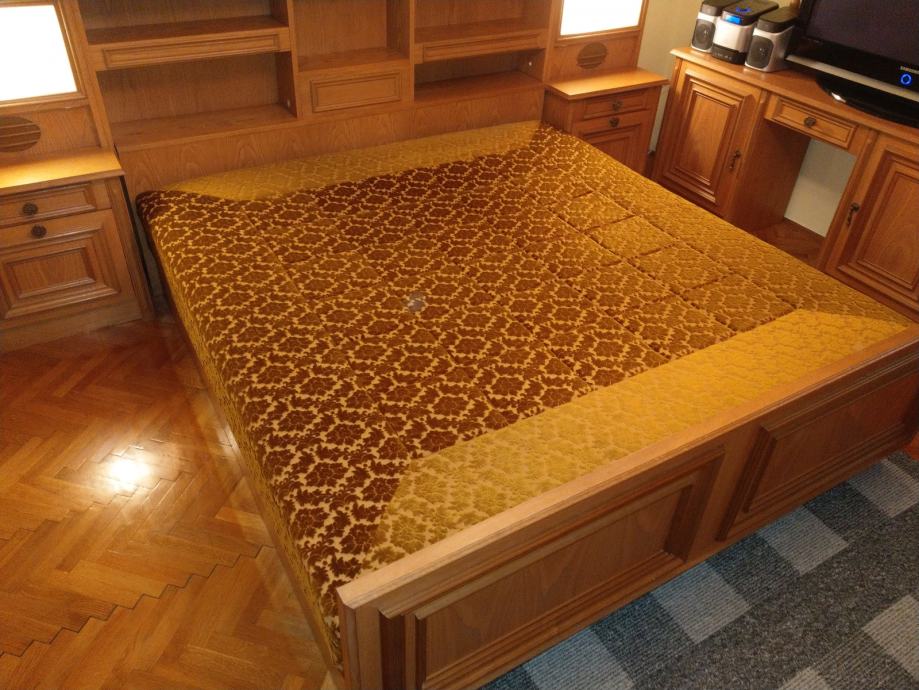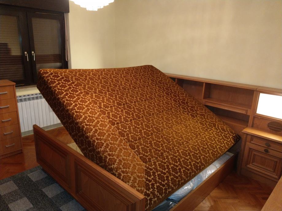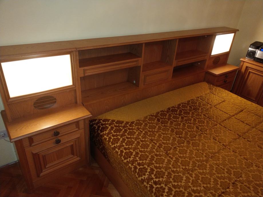 Integrirani most iznad kreveta sda policama, sa dva noćna ormarića, sa dvije ladice i dva bufet ormarića,