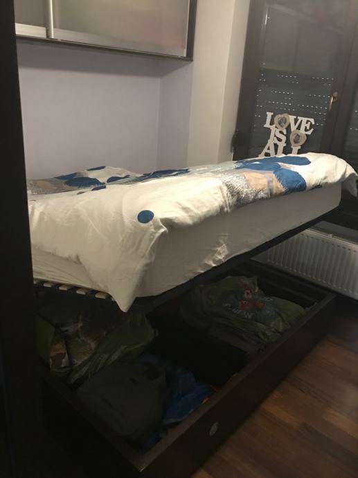 Prodajem spavaću sobu koja se sastoji od kreveta sa prostorom za odlaganje i podnicom 160x200, ugradbenog ormara 242x256x67, ormar-most 248x64x40 i 2 noćna ormarića 40x30x30. Soba je modernog dizajna, ručno rađena sa puno prostora za odlaganje.