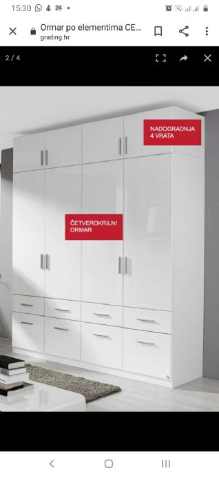 Prodajem gornji element, nadogradnju ormara Cello, 4 vrata. Nadogradnjom ormara dobivate dodatni prostor za odlaganje stvari i povećavate visinu svog ormara.
