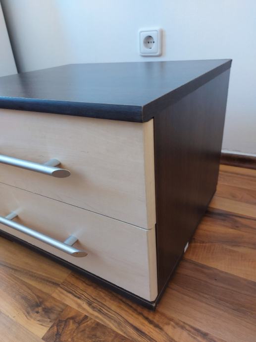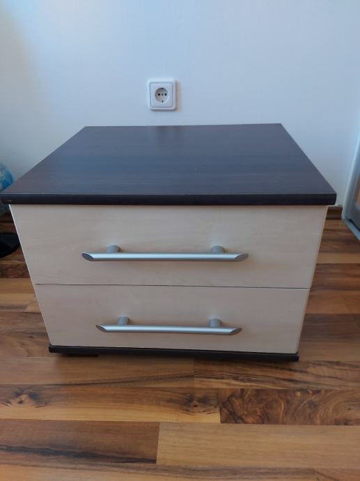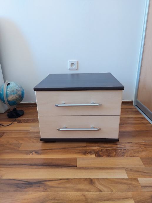 Dva uščuvana noćna ormarića s po dvije ladice.