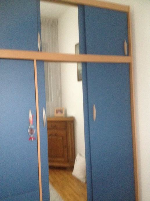 Trokrilni ormar od iverala u odlicnom stanju. Donji dio klasicno otvaranje na pant jedna vrata preostala dvoja klizna.... gornji na klizanje.. tri ladice.. s ogledalom po cijeloj visini.. Dimenzije 200×137×56