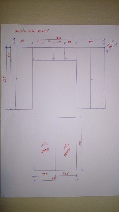 Prodajem spavaću sobu proizvođača MEBLO, prema dimenzijama u prilogu.
