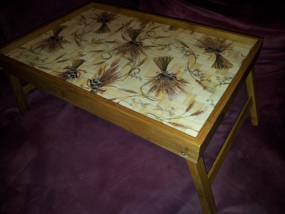 Mislim da je sve vidljivo sa slike. Ovakvi pladnjevi (stolići) po ducanima kostaju i po nekoliko stotina kuna. Osim za dorucak mozete ga koristiti i za druge objede :-) kao i za drzanje lap topa, a i mnogih drugih stvari. Stolic je potpuno nov, nekoristen i uzivo je puno ljepsi nego na ovim slikama....