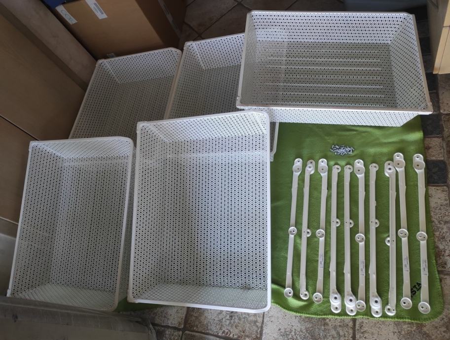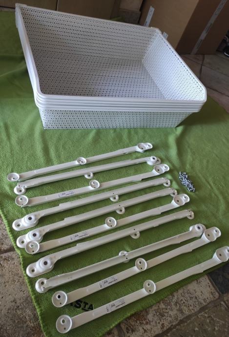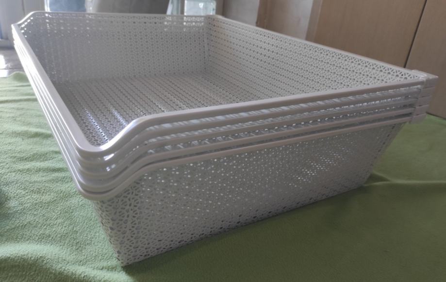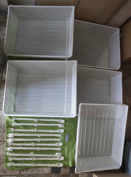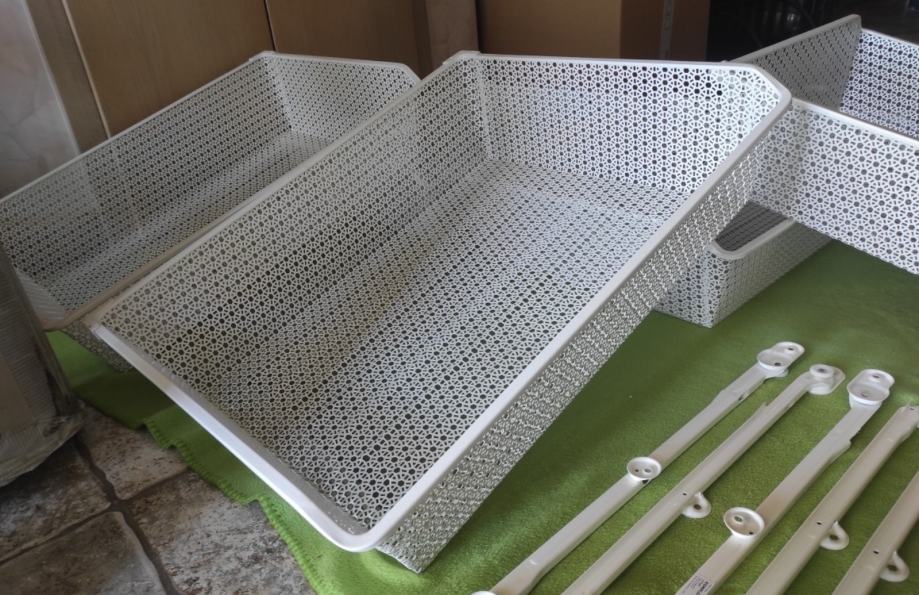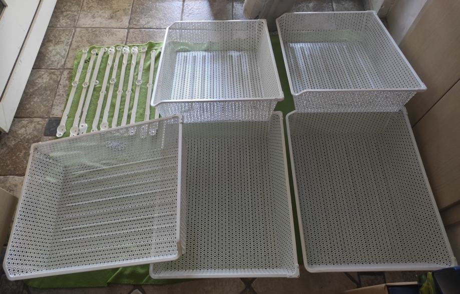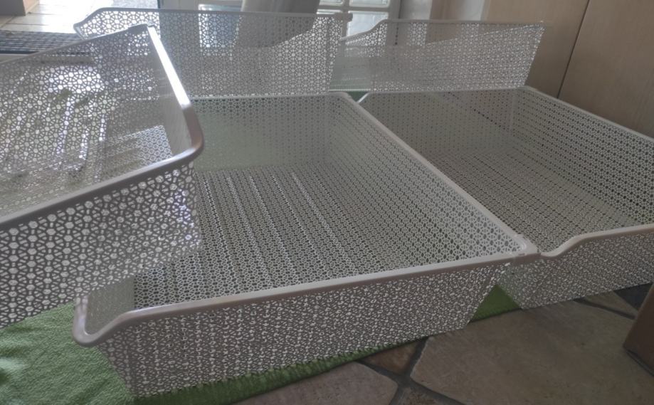 5x IKEA KOMPLEMENT metalna košara sa izvlačnim šipkama, bijele boje, dimenzije 75x58 cm.