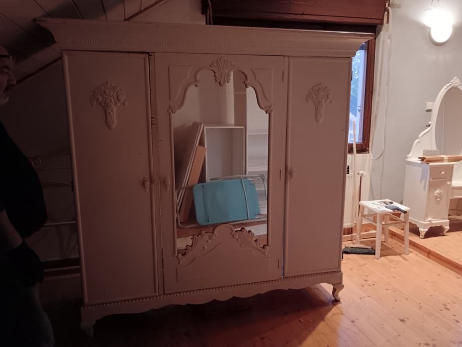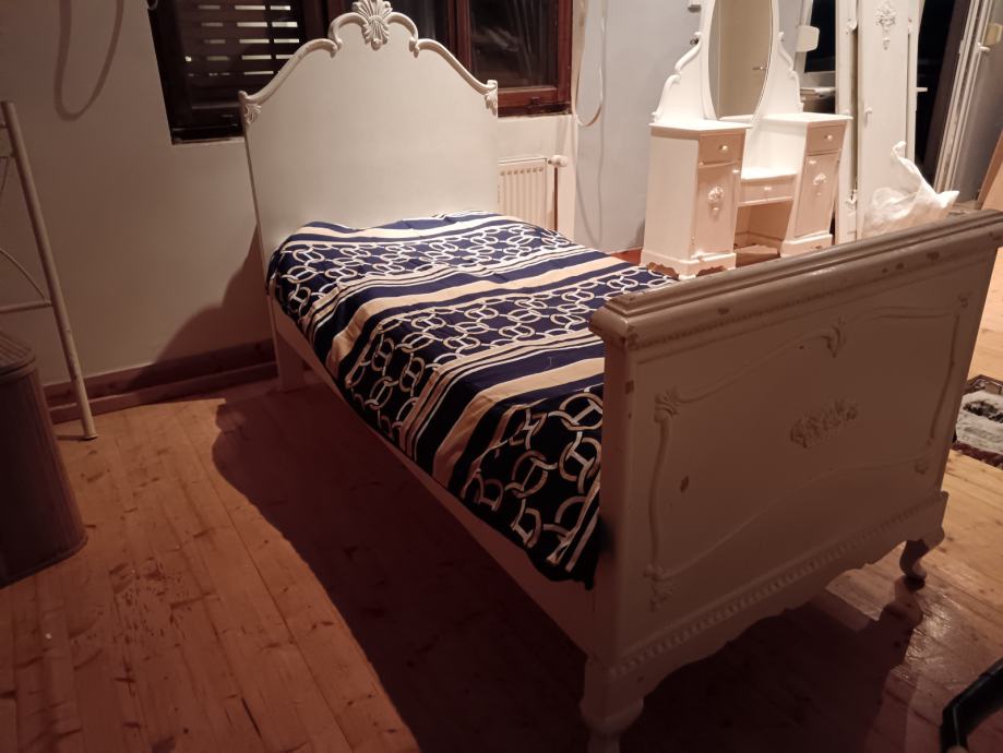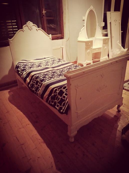 Komplet uključuje ormar, dva kreveta, dva noćna ormarića, kozmetička komoda sa ogledalom, okrugli stol na razvlačenje.