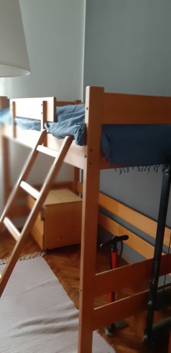 Na poklon: povišeni originalno rađeni drveni krevet na kat s ljestvama 180x90 cm