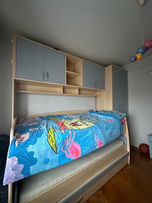 Prodajem komplet dječje sobe – krevet + 2 madraca + ormari i police