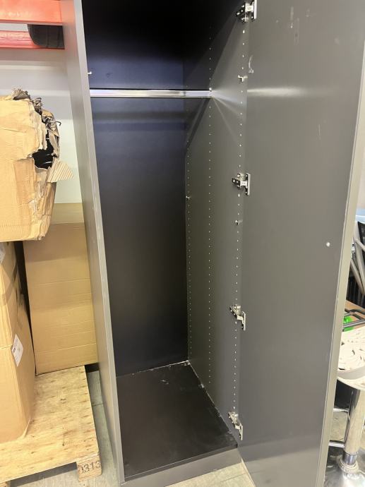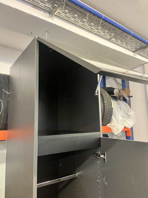 Drveni ormar - donja prednja fronta metalna - gornja prednja fronta siva visoki sjaj