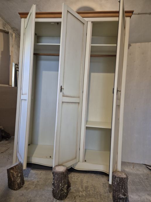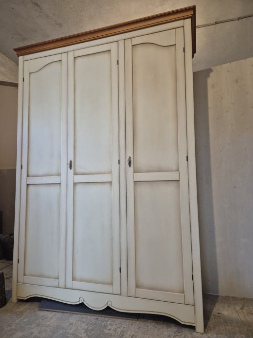 Lijep i elegantan ormar koji je koncipiran za mediteranski stil ..ravnih linija ali ipak jedna lijepa graviranje koja naglasi patina.lakirano u više boja..fino i pedantno...patina I boja vijenca su namjerno uskađene.