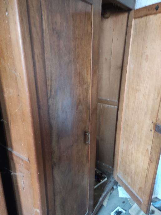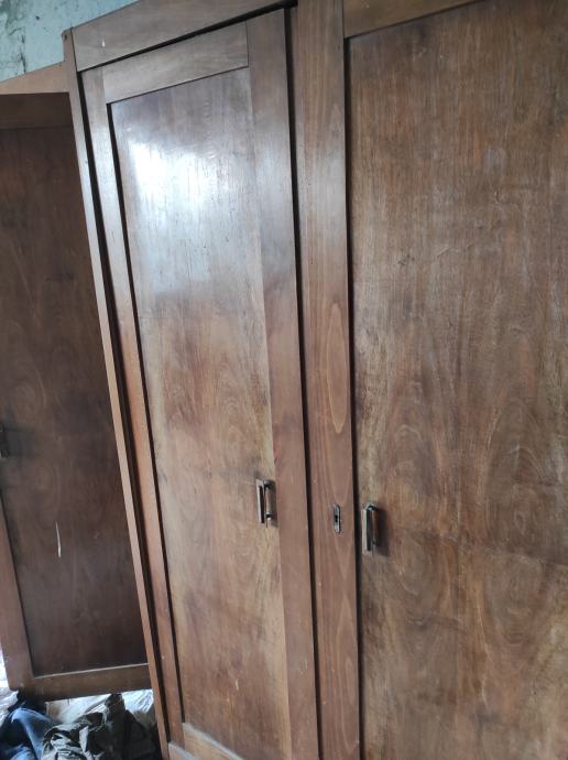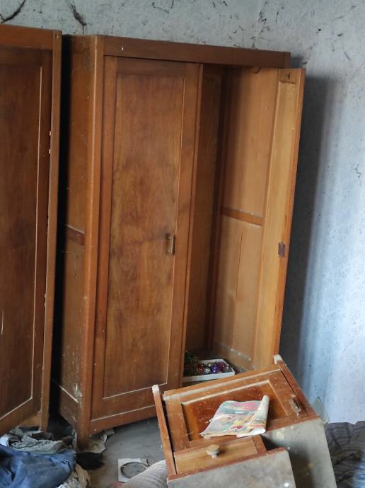 Dva ormara stara 80+ godina,a kao da su sada napravljena,bili od moga djeda ,a sada su kod mene i stoje.Napravljeni u tvornici pokucstva Kruljac N.Gradiska 1943 godine.( ima u slikama stambilj).Mjere su 190 visina i 170 širina,Ormari u extra stanju sa obzirom na godine,nalaze se u staroj kuci,jedan ima tri police,a drugi je za vješanje robe( kaputa,hlaca, odjela), a ima nosace za jednu policu.Za sve informacije nazovite na broj 097-660-1365 ili pošaljite upit na Viber ili Njuskalo, a Šaljem Poštom - Paletom, ili Autobusom ili u dogovoru sa kupcem, moguće kupiti samo jedan ormar,sve po dogovoru.VIDI SLIKE!! Ormare treba očistiti i skoro i ne trebaju nikakvu obnovu, stvarno su zdravi i dobri sa svih strana,mozda lakiranje,a ako netko kupi oba moguc dogovor o korekciji cijene, također i ako kupac dode sam po njih.