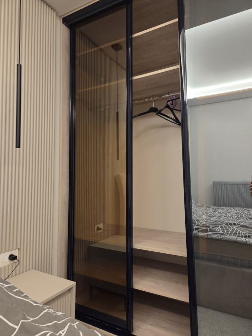 3 klizna vrata, bronca/zatamnjeno staklo, otvara se po 1/3 ormara.