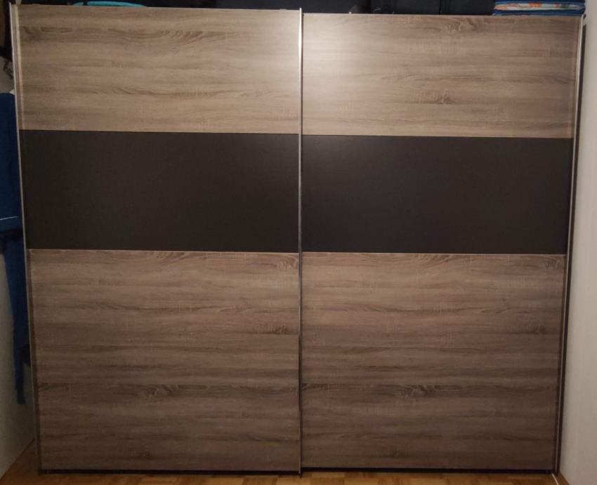 Prodajem garderobni ormar dimenzija dužina 250cm, visina 215cm i dubina 65cm, sa kliznim vratima i tri odjeljka