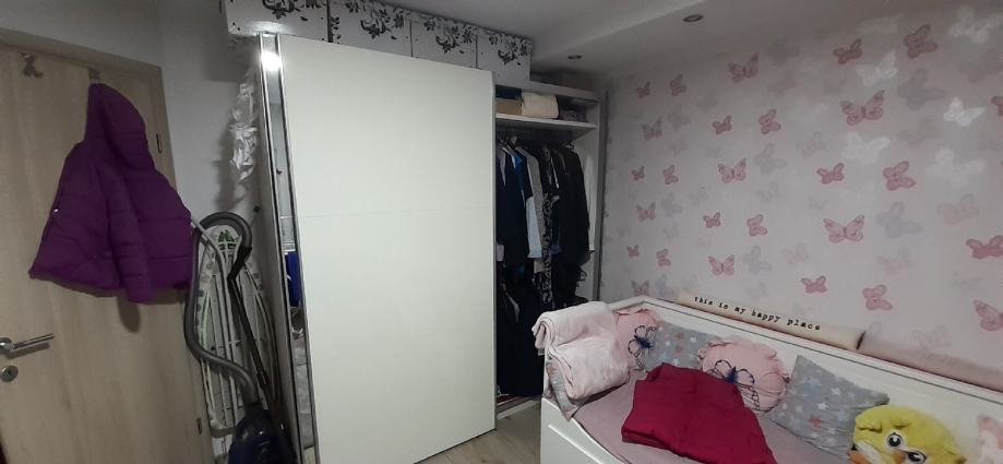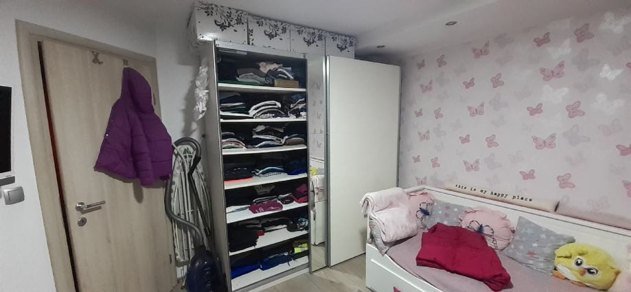 Prodajemo garderobni ormar u odlicnom stanju koji je kod nas par godina.Ormar je od masivne iverice 18 mm.sastoji se od dvojih vrata koja imaju stopere na sebi.ormar nije ostecen ni ogreban niti je kad preseljavan.dimenzije ormara su dubina 63cm,visina 213cm,sirina 206cm.ormar je placen 6999kn u lesnini mi ga prodajemo za 700 eura,u cijenu je ukljucen prijevoz vlastitim kombijem i pomoc kod utovara i istovara.