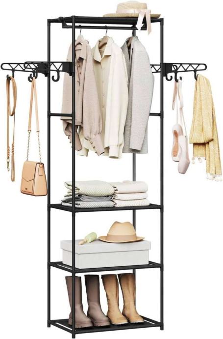 Otvoreni dizajn omogućuje brz i jednostavan pregled odjeće i ostalih predmeta, čime se štedi vrijeme pri svakodnevnom korištenju. U paketu dolaze garderobni stalak, pribor za montažu i upute, a proizvod se može lako sastaviti i rastaviti za transport.