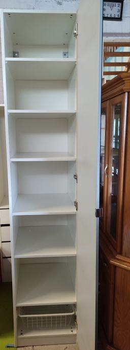 Prodajem jednokrilni ormar sa ogledalom, dimenzija 50×236×60 cm. Ormar je bijele boje, s jednim vratima koja su kompletno prekrivena ogledalom preko cijele površine. Unutra se nalaze police koje omogućuju praktično slaganje odjeće, posteljine ili drugih stvari.