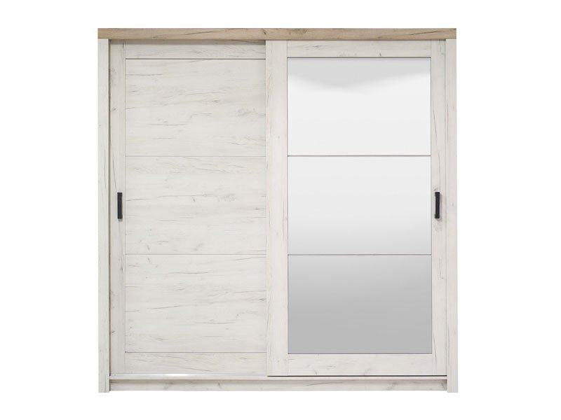 Veliki i praktičan ormar s kliznim vratima koji nudi obilje prostora za organizaciju garderobe. Jedna fronta opremljena je ogledalom koje donosi dodatnu funkcionalnost, olakšava svakodnevnu upotrebu i vizualno proširuje prostor. Unutrašnjost kombinira police i prostor za vješanje, što omogućuje uredno slaganje različitih vrsta odjeće i dodataka.