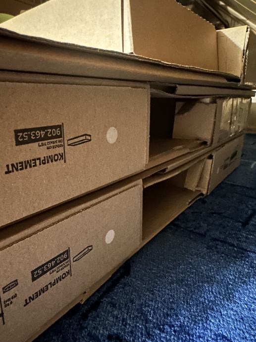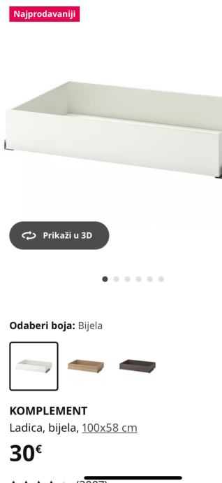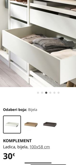 Prodajemo 5 ladica za Pax ormar, bijele boje. Nikad otvoreno stoji u sobici. Prodajemo svih 5 u kompletu ili mijenjamo za boju hrasta iste takve. Kupljena kriva boja. 20€ jedna sve skupa 100€.