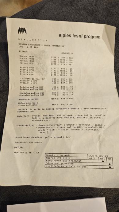 Posjedujem i kompletnu dokumentaciju za rastavljanje/ponovno sastavljanje ormara.