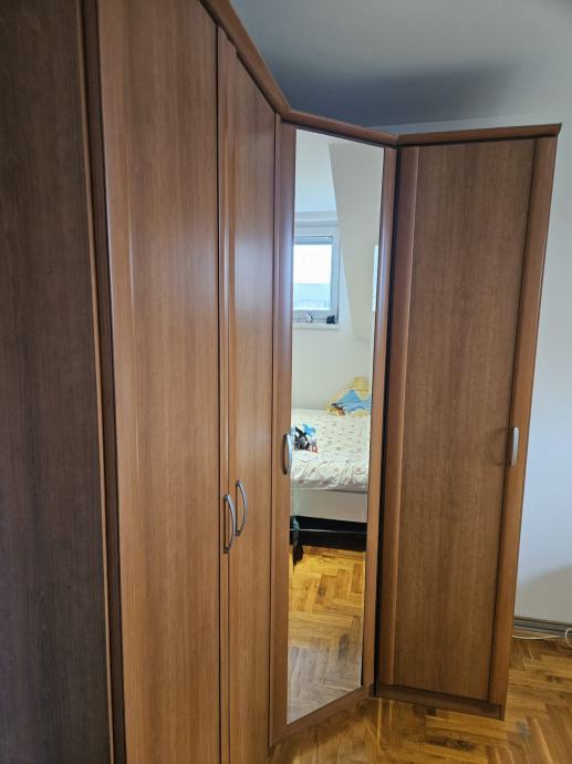 Prodajem dobro očuvan kutni ormar. Ormar je prije dva dana rastavljen i svi dijelovi su uredno spremljeni. Visina ormara je 217 cm, a prikazane dimenzije su mozda cm vise/manje.