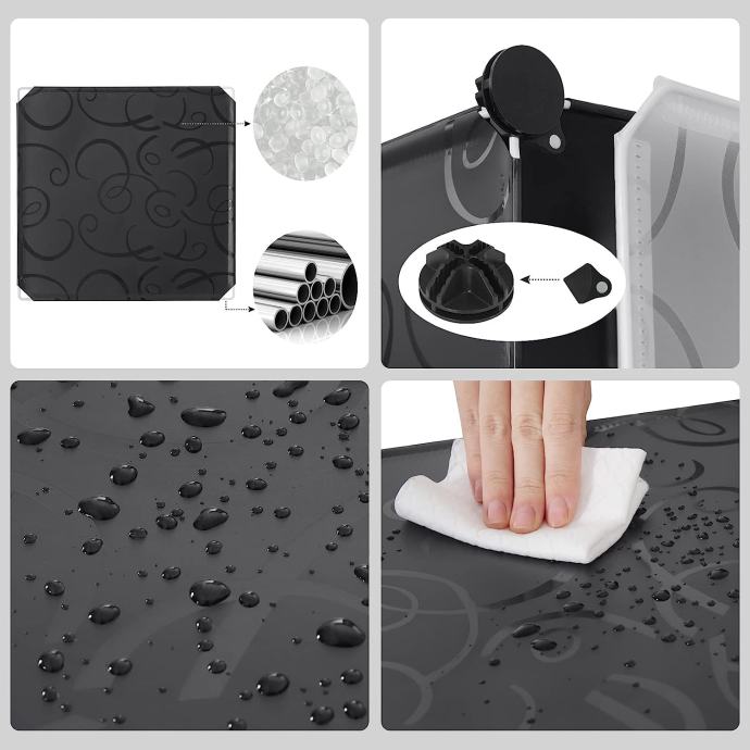 PP plastične ploče, ABS spojnice i čelični okvir čine stabilan, robustan, vodootporan, otporan na vlagu i dugotrajan modularni organizator. Svaki kub može nositi do 10 kg.
