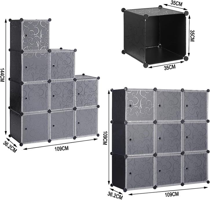 Ako još uvijek tražite mjesto za cipele i odjeću, ovaj 9-kubični ormarić stvara dodatni prostor za jednostavnu pohranu. Dimenzije po kubu: 35 x 35 x 35 cm.