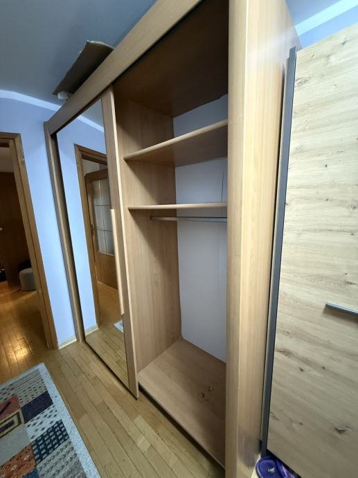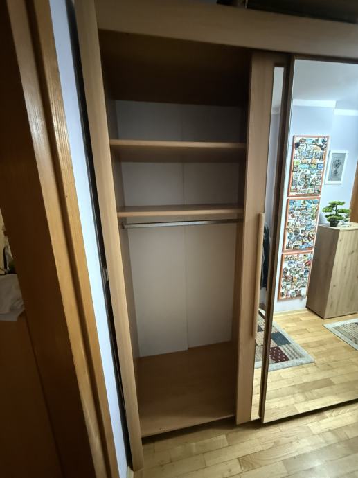 Ormar - garderobni ormar - na prodaju. Dimenzije: Širina 185, visina 215, dubina 70 cm. Rastavljen nakon fotografiranja, potpuno ispravan, bez oštećenja. Idealan je kao ormar za spavaću sobu ili ormar za odlaganje stvari, garderobu, na vrh stane još puno toga. Na kliznim vratima su ogledala. Prodajemo ga jer nam je višak, na to mjesto ide manji. Ormar se nalazi u Varaždinu, centar. Prijevoz i dostava je moguća, za Varaždin ili bližu okolicu mogu ga dostaviti besplatno, za lokacije izvan Varaždina prema dogovoru. Ne šaljem ga kurirskom službom ili poštom, isključivo osobna primopredaja na lokaciji ili ga mogu dostaviti.