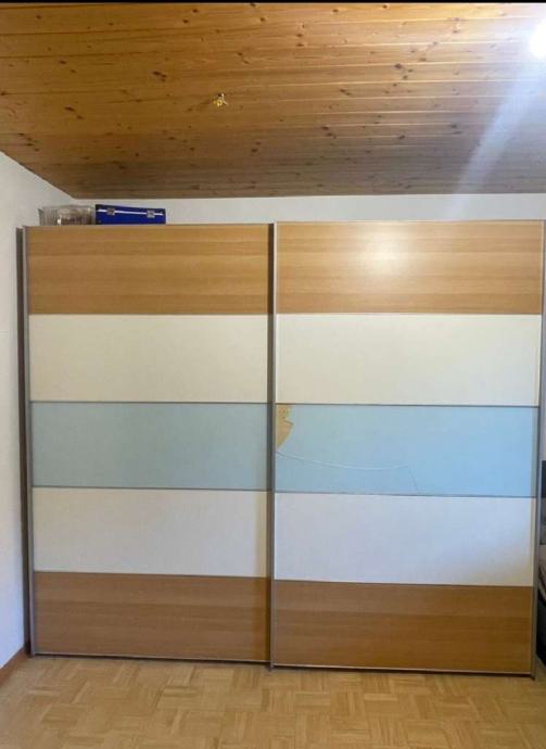Ormar klizni( L250x H 215x65) u dobrom stanju,s malom greskom.U ponudi se moze kupiti odgovarajuci krevet .