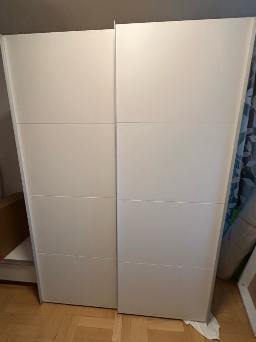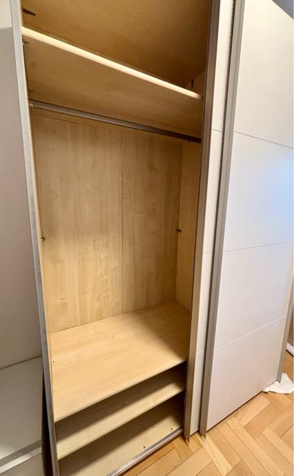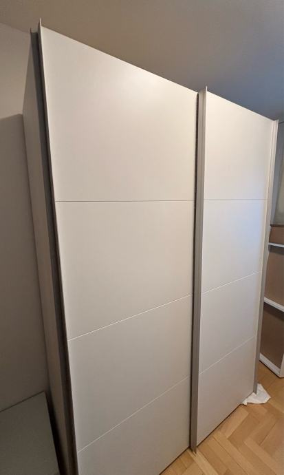 Prodajem prostrani ormar s kliznim vratima u bijeloj boji, dimenzija 150 cm širine, 215 cm visine i 60 cm dubine.