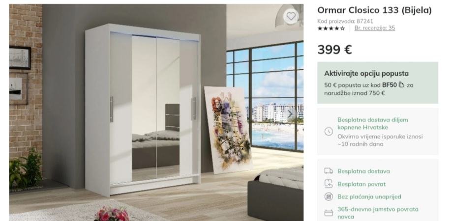 Besplatna dostava za grad Zagreb do prvih vrata dalje za unos i montažu dogovarati sa dostavom