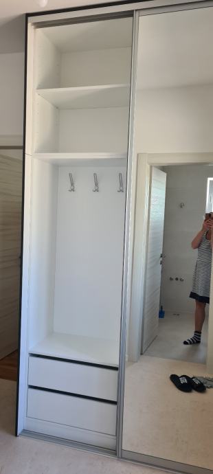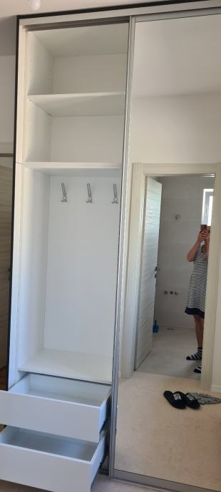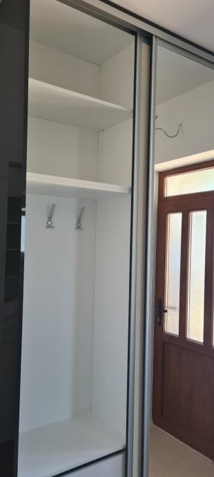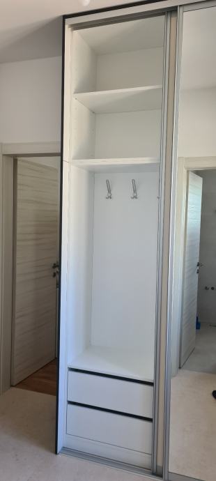 Prodajem novi ne korišten ormar sa kliznim vratima.Kvalitetno rađen po mjeri.Jedna strana ogledalo, druga antracit boja.Ormar je rađen po mjeri ali smo promašili dimenzije prilikom mjerenja i zato ga prodajem.Dimenzije 150 x 285 x 52. Napravljen je 10.05.2025. Cijena 1100 eur. toliko smo ga i mi platili. Imam račun.Slike u prilogu. Zvati na broj 0991916152