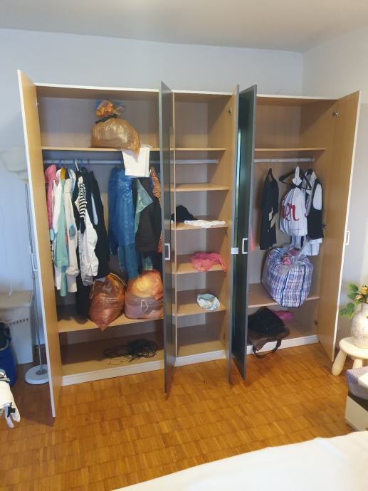 Prodajem uščuvan ormar kupljen u Lesnini sa 2 noćna ormarića. Širina 225 cm, visina 210 cm, dubina 60 cm